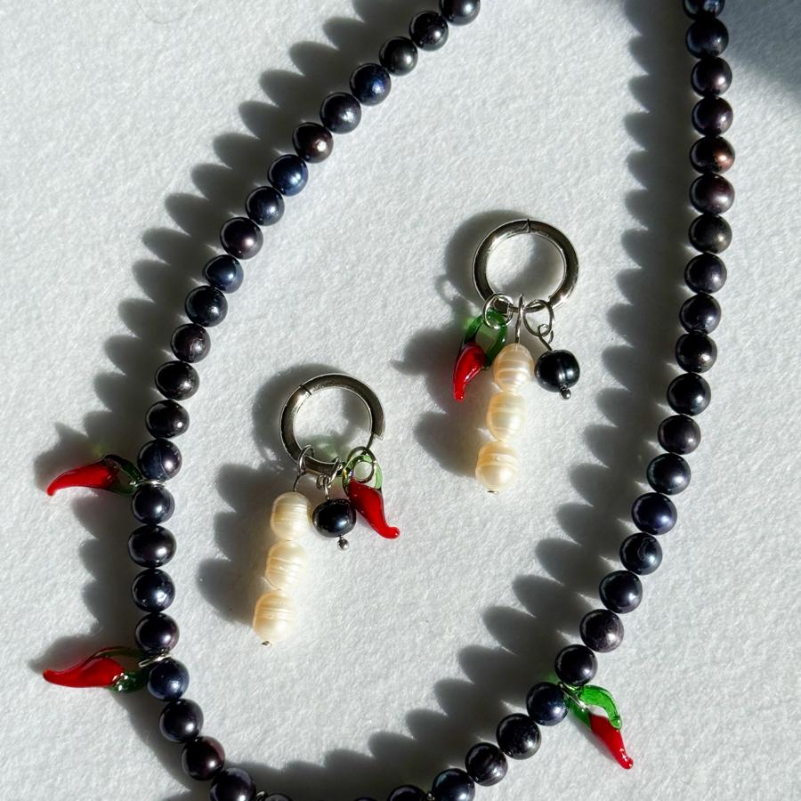 - Malzeme: Doğal Premium kalite Siyah İnci beyaz inci ve biber figürü kullanılarak tasarlanmıştır.