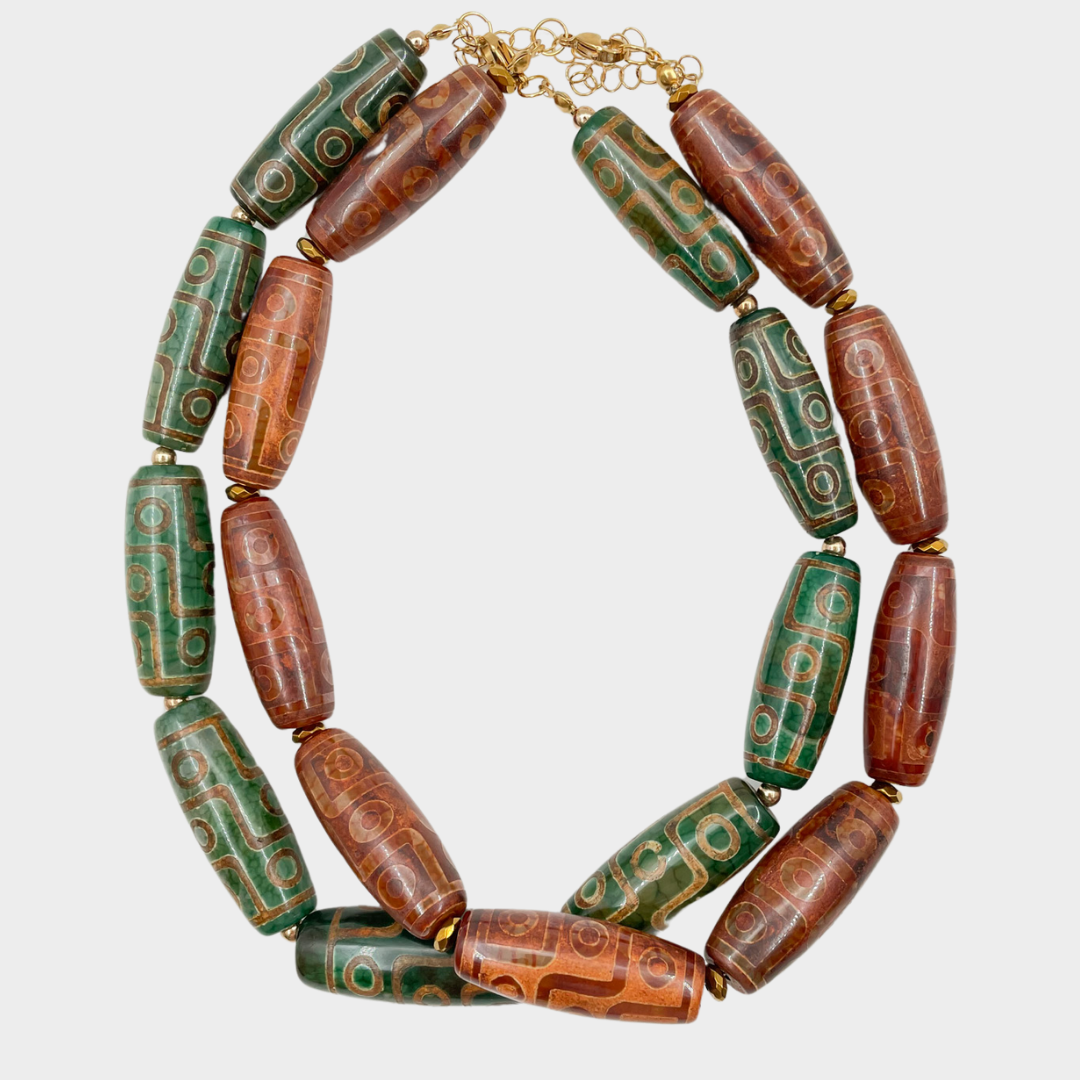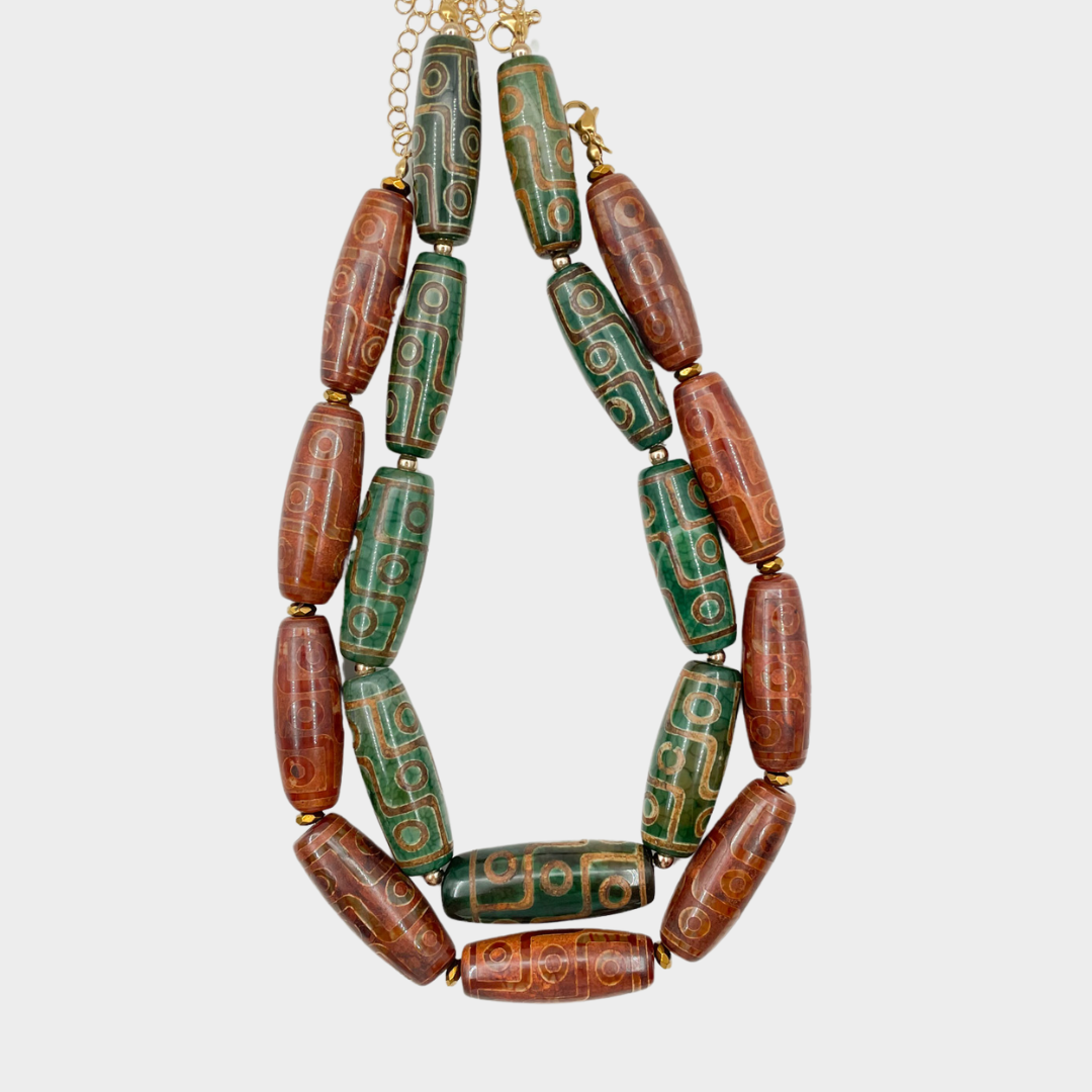 - Malzeme: Kolyemizde, Tibet akik taşı ve hematit taşı kullanılmıştır.