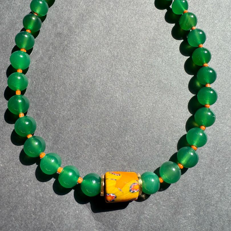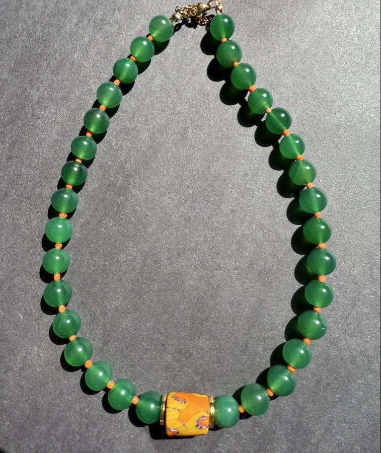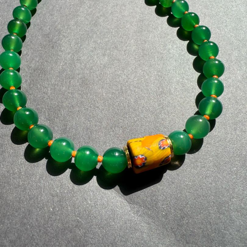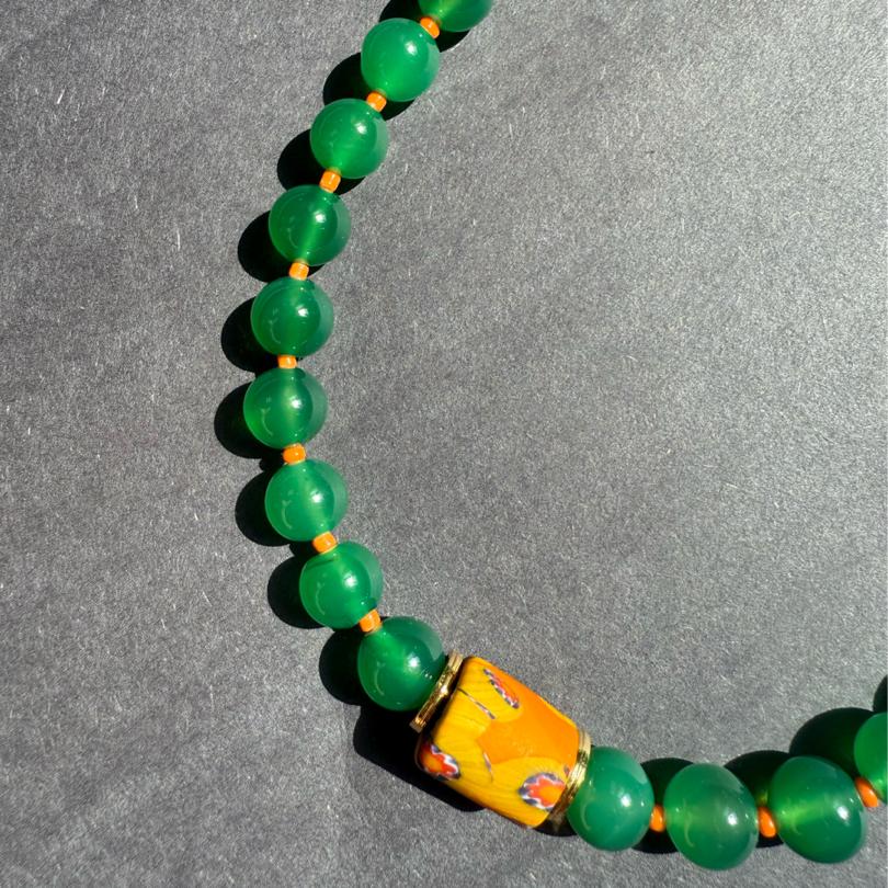 - Malzeme: Doğal akik taşı ve özel el boyaması gana cam boncuk kullanılarak tasarlanmıştır.