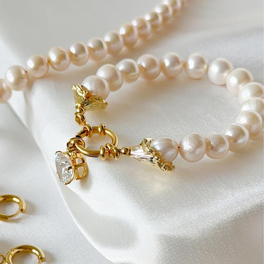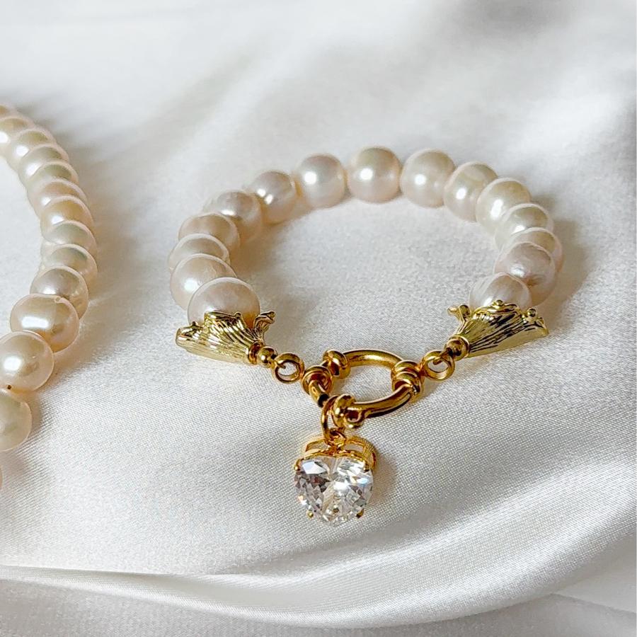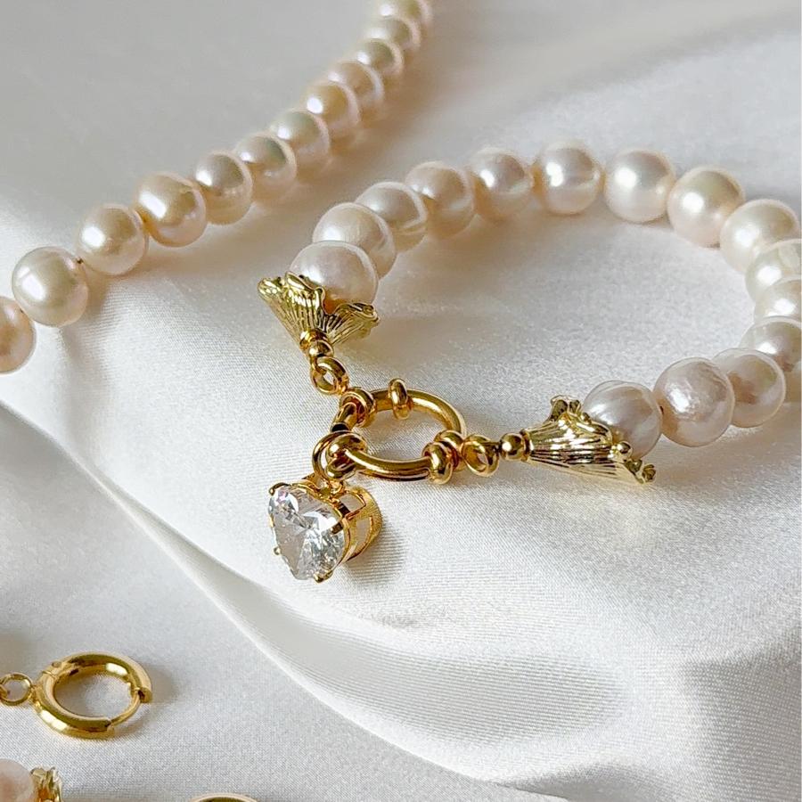 - Charm: Bilekliğin ucundaki kalp ve çiçek desenli olan kulp detayları, Pirinç üzeri altın kaplamadır.