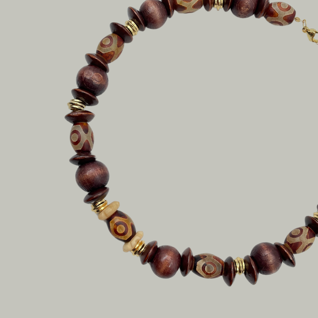 - Malzeme: Kolyemiz Tibet akik taşı ve doğal ahşap kullanılarak tasarlanmıştır.