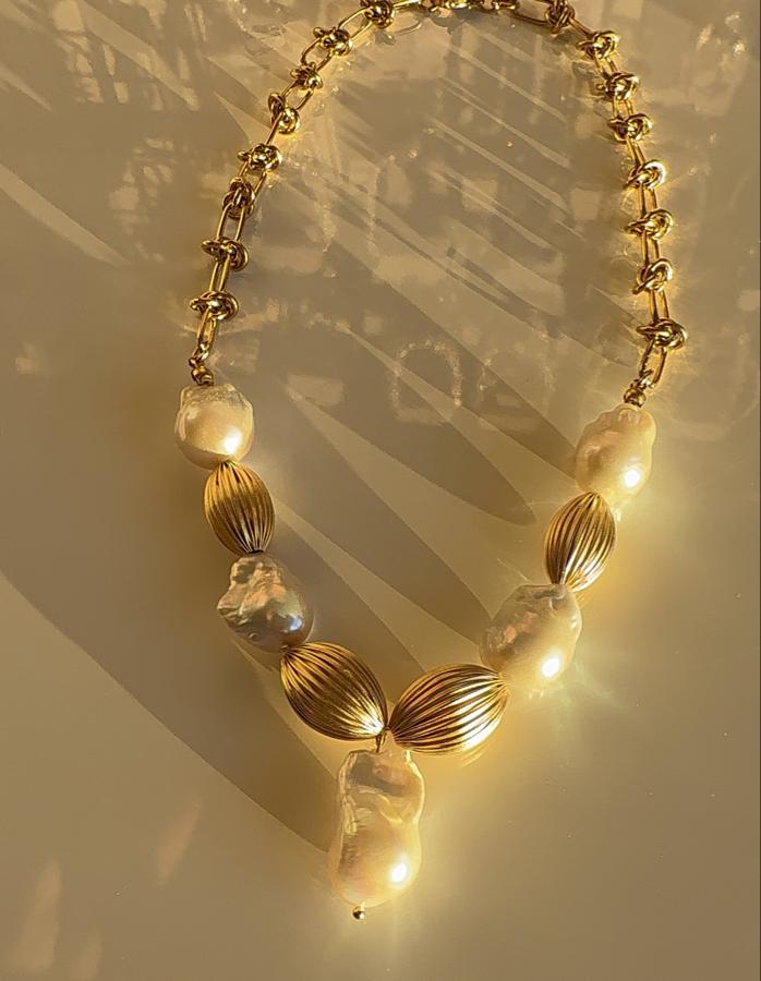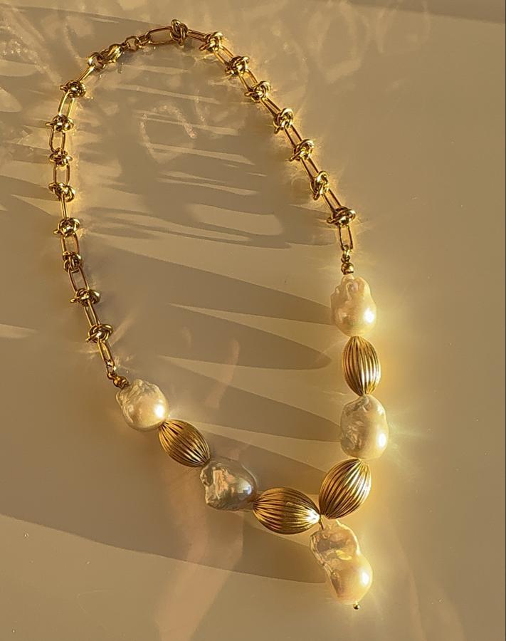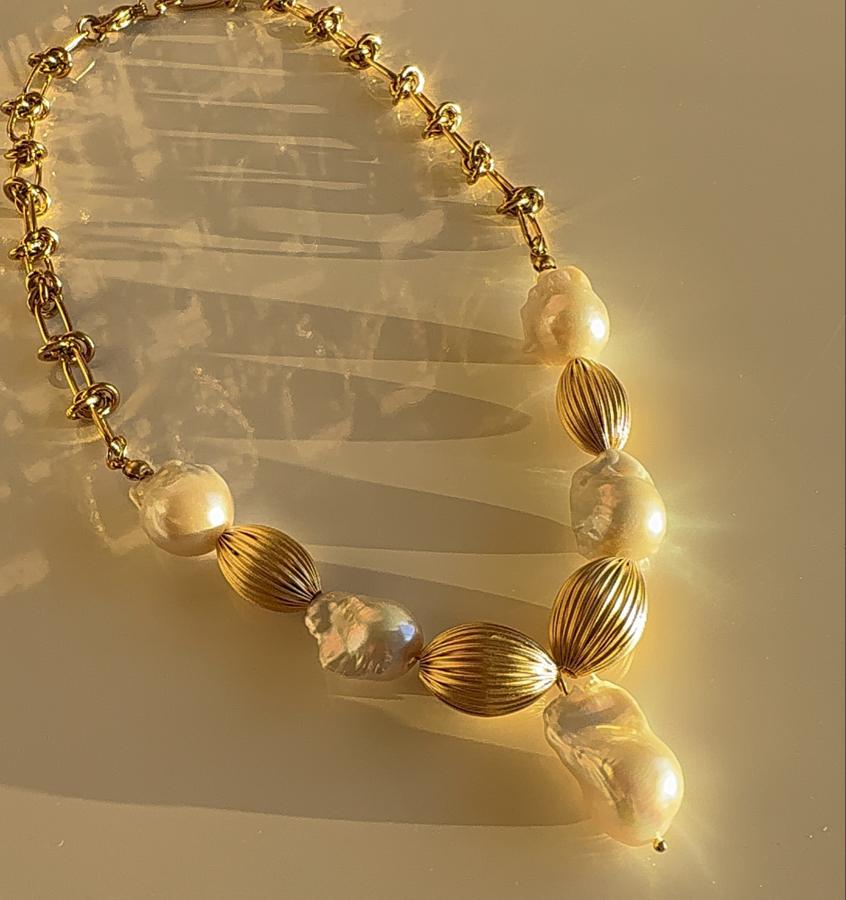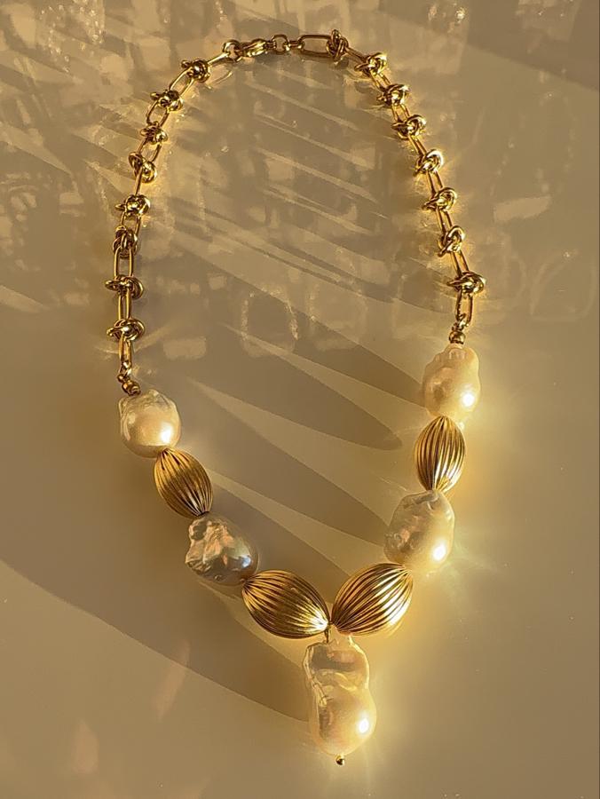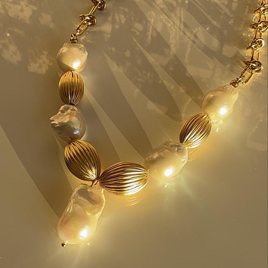 - Malzeme: Arka zincir materyali çelik olup üzeri altın kaplamadır. Premium kalite barok kullanılarak tasarlanmıştır. İncinin yanındaki gold aksesuarlar pirinç üzeri altın kaplamadır.
