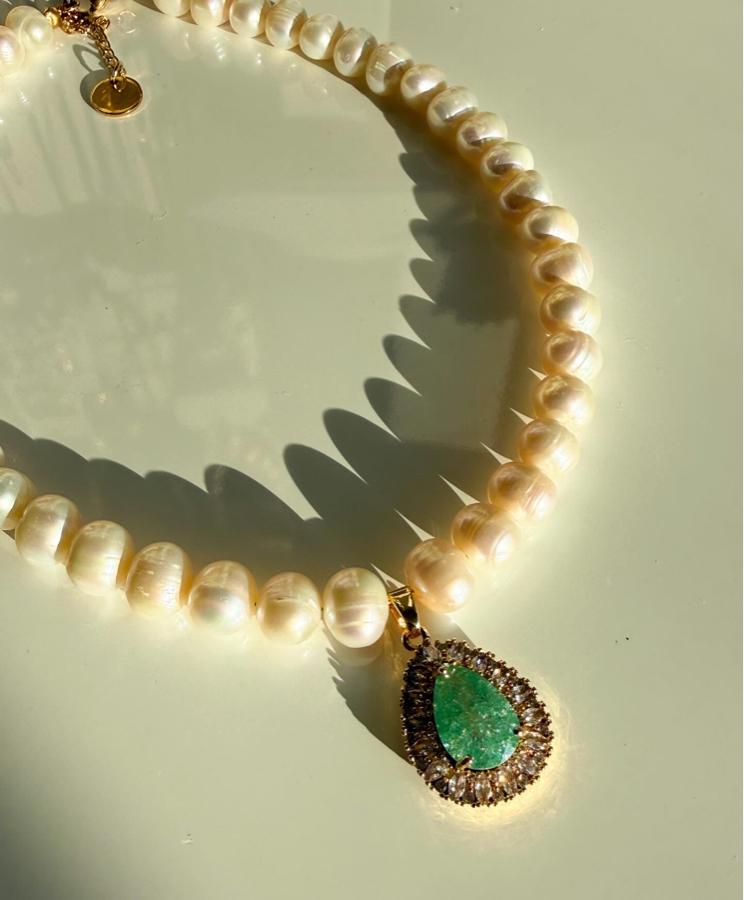 - Charm: Zirkon taşlı zümrüt kolye ucu ise pirinç üzeri altın kaplamadır.