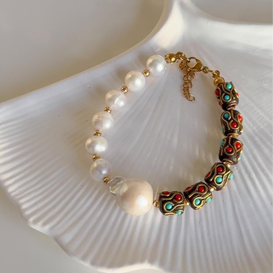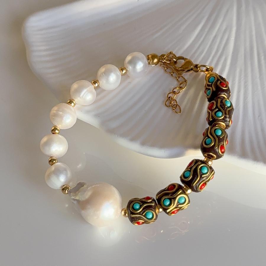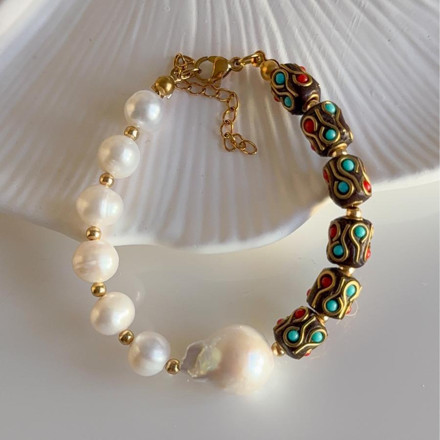 - Malzeme: Premium kalite tohum barok inci, yuvarlak inci ve materyali pirinç nepal boncuğu(üzerindeki boyama tamamen el boyamasıdır) kullanılarak tasarlanmıştır.
